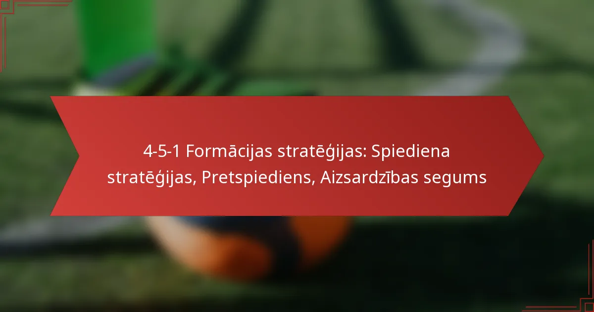 4-5-1 formācija ir taktiska izkārtojuma shēma futbolā, kurā ir četri aizsargi, pieci pussargi un viens uzbrucējs. Šī formācija ir izstrādāta, lai nodrošinātu spēcīgu viduslīnijas klātbūtni, vienlaikus ļaujot saglabāt aizsardzības stabilitāti un iespējas pretuzbrukumiem.