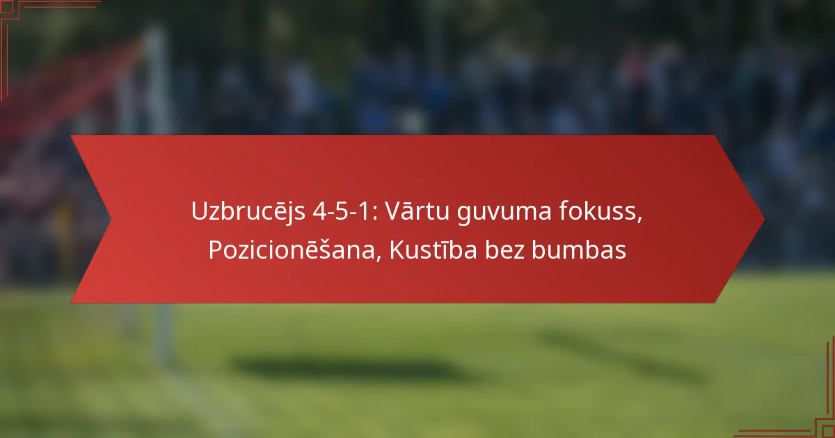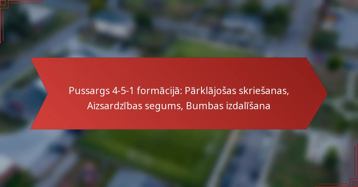 4-5-1 formācija futbolā ir taktiska izkārtojuma veids, kas ietver četrus aizsargus, piecus pussargus un vienu uzbrucēju. Šī formācija ir izstrādāta, lai nodrošinātu stabilu aizsardzības struktūru, vienlaikus ļaujot elastību pussargu spēlē.