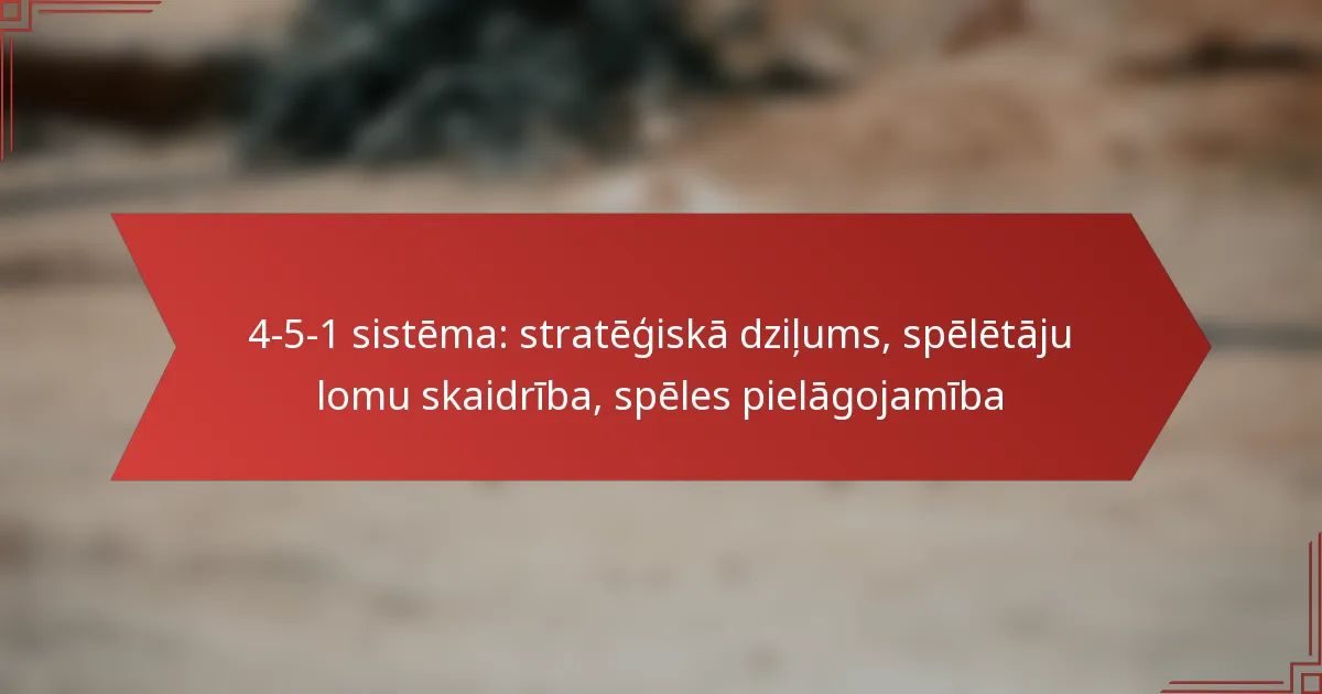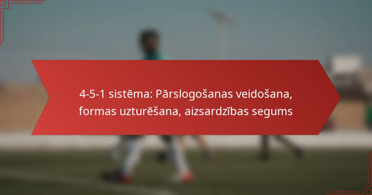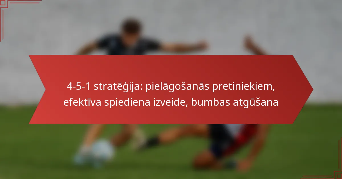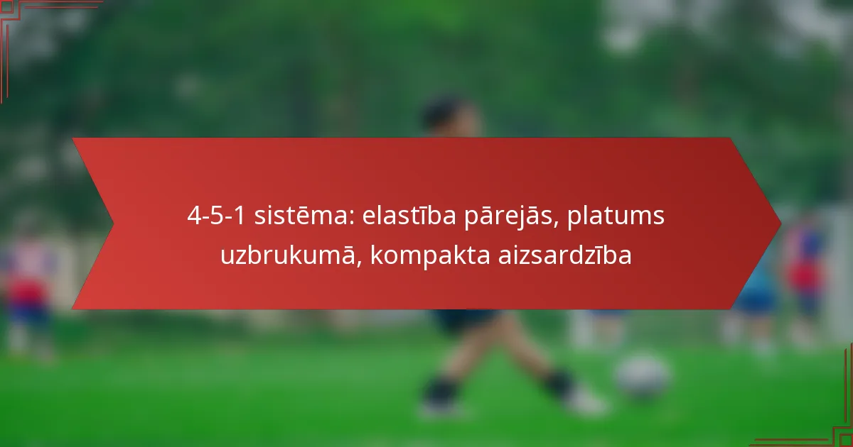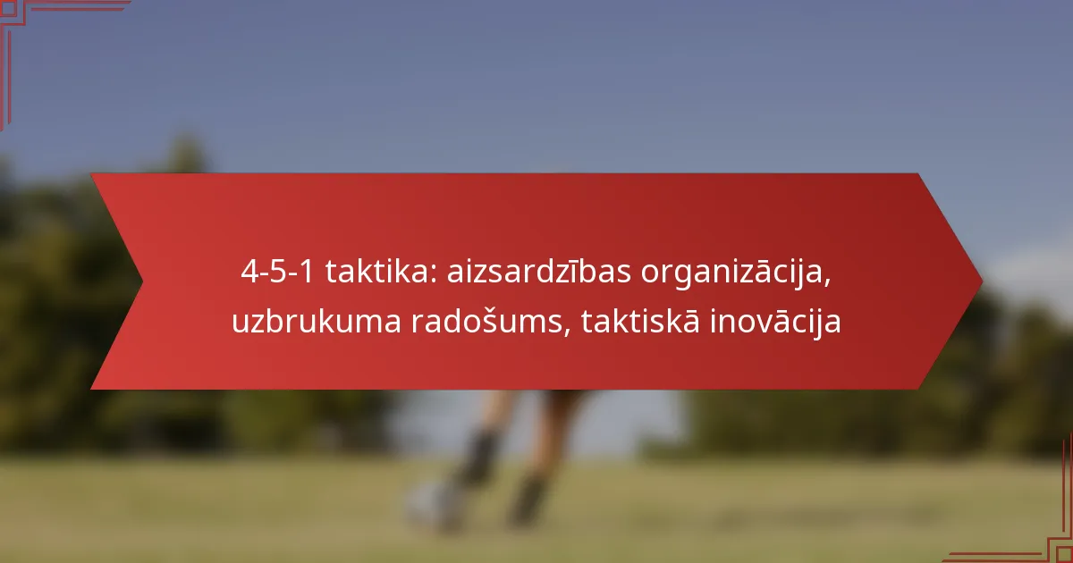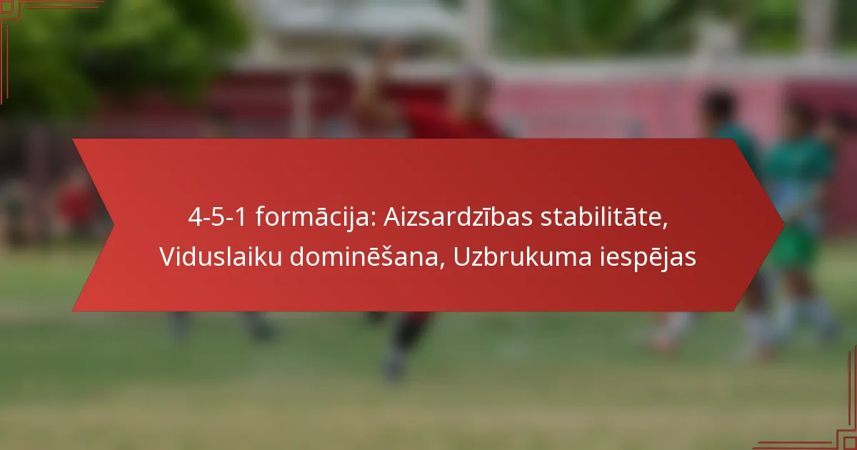 4-5-1 formācija futbolā ir taktiska izkārtojuma veids, kas ietver četrus aizsargus, piecus vidējos spēlētājus un vienu uzbrucēju. Šī formācija ir izstrādāta, lai nodrošinātu spēcīgu vidējo līniju, vienlaikus saglabājot aizsardzības stabilitāti.